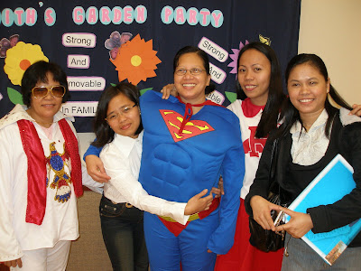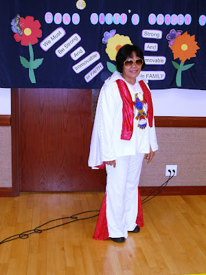The Birthday Social was, as everything the sisters do, a knock out. I gave them a script called "Emma’s Garden Party", and they took the script and ran with it. They had sisters play the parts of the general RS presidents, and then had the music and dances and characters for the time periods. The highlight for me was "Elvis", and Superman, oh yes and two sisters dressed up as pizza. They really know how to throw a party. They had sandwiches, veggies, chips, soda, and pop corn for desert. Interesting combination again! What a fun night, and such fun to see familiar faces from home.