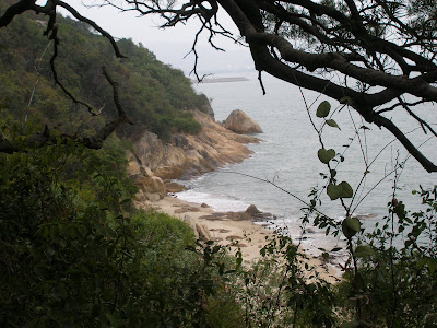 After a short rest we started down the other side to Mui Wo. This side is much steeper and we were certainly glad that we were going down, not coming up (love those walking sticks). Stairs, stairs, and more stairs. The trail drops down to the beach on the opposite side from the Mui Wo Ferry terminal, and we walked around the circular bay, with it’s lovely beach and over into Mui Wo central. After a quick drink we caught the slow ferry back to Central and the end of our day out.